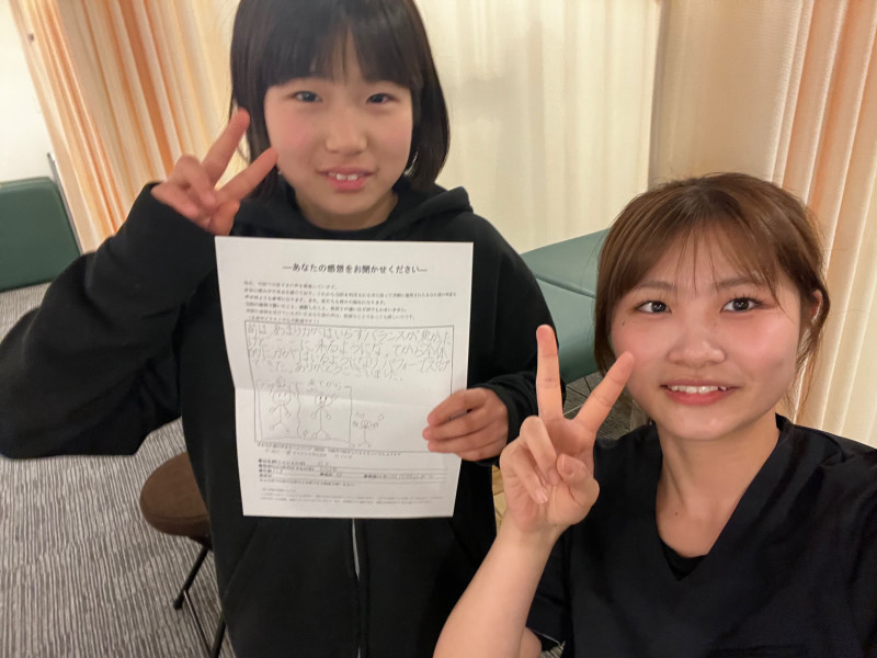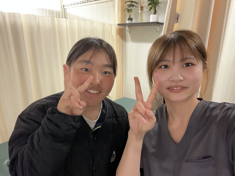 今まで足首や指の怪我が多かったのですが初めて腰を痛めて、整形外科など様々な病院に行きましたがどこの病院も効果がありませんでした。 妹が前に通っていたこともあり私も通うようになりました。 ここの院は1回の施術時間が30分もあり最初は驚きました。 たった一回の施術で反れなかった腰が少し反れるようにとても感動しました。 担当していただいた亀山先生はとても楽しく面白く施術していただいている30分は毎回とても早く感じました。 腰の痛みで通院していましたが最近では膝や肩などいろいろなところを治していただきました。 また亀山先生を見て柔道整復師になりたいという夢もできました!! 本当にここにきてよかったです。 ありがとうございました!! (れお様 川口市 17歳(女性) バレーボール 腰痛・シンスプリント) ※効果には個人差があります |