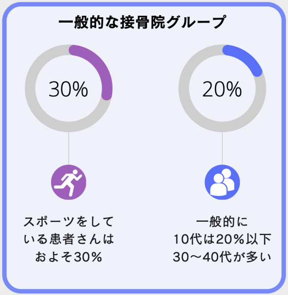 一般的な接骨院よりもスポーツ疾患、若年層が多いです。